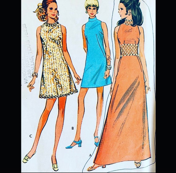 60s Pattern Gogo Dress Pattern Evening Gown Sleeveless Etsy